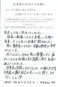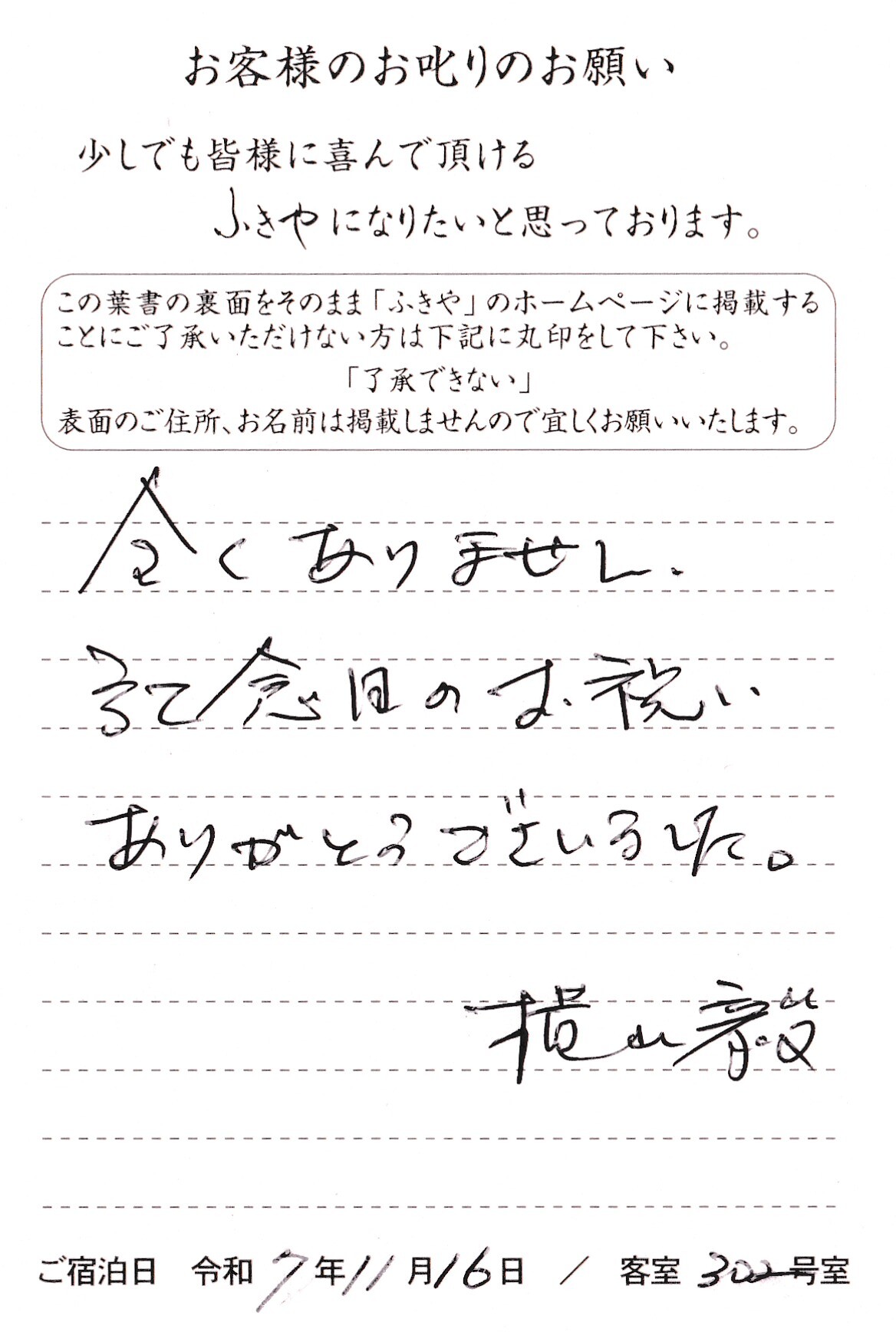 「ふきや」にお越しいただいたお客様の記念日のお写真、