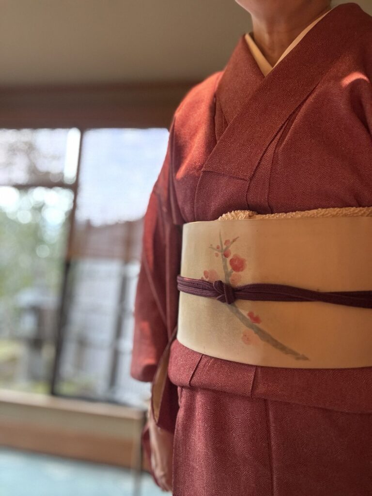 梅の帯を締めました。