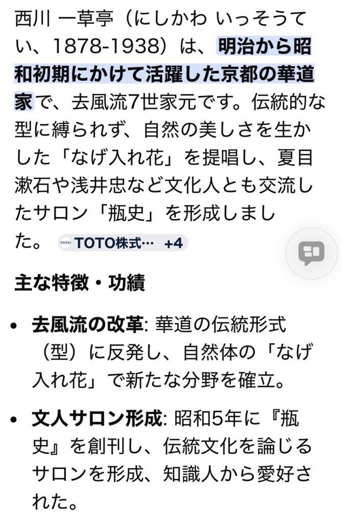 フロントにある、西川一草亭の掛け軸 え?なになに? 「堀口捨己と親交が深かった」❗️ 堀口捨己と言えば湯河原万葉公園にある珍しい建築の縄文茶室「万葉亭」を 作った方です。 そんな繋がりを感じて嬉しくなりました。 「夏目漱石が掛け軸を送った人だよ」と、書家であるふきやのお客様が教えてくださいました。 実は私、何もわかってなかったんです。 勉強になります💦
