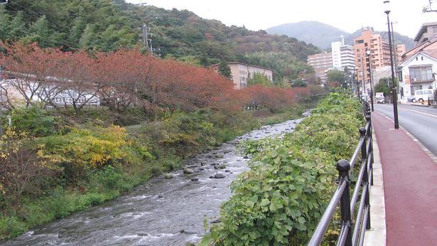温暖な湯河原も紅葉の季節になってきました。 千歳川沿いの桜並木も赤く色づいております。 寒くなって参りましたね 温泉が恋しい季節です。 あ そうそう 湯河原温泉には美肌の秘密があるんですよ お肌は弱酸性 でも湯河原温泉は弱アルカリ性 アルカリには古い角質を溶かす働きがあるのです。 なるほど だからツルツルになるのですね つまり温泉に浸かっているだけで 新しいお肌に甦るのですから 石鹸つけてゴシゴシ洗う必要は無いのです。 ただ ぼんやり 温泉に身を沈めているだけで 綺麗なお肌になるのです
