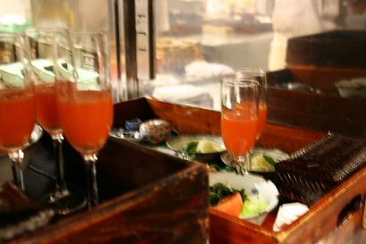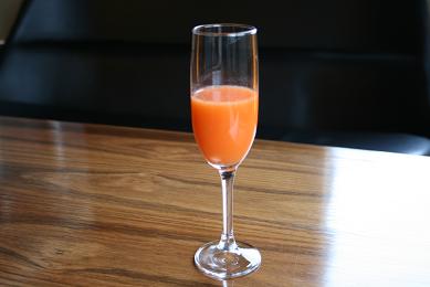 ふきやでは 朝食の時に人参ジュースをお持ちしております。 朝、ジューサーで作りたてのものです。 デューク板長いわく 「人参ジュースには黄金比率があるんです。 人参2本・林檎1個・レモン半分です。 余計な物を入れると せっかくの栄養素を失う事もあるんですよ。」 ふーん こだわりの比率なんですね。