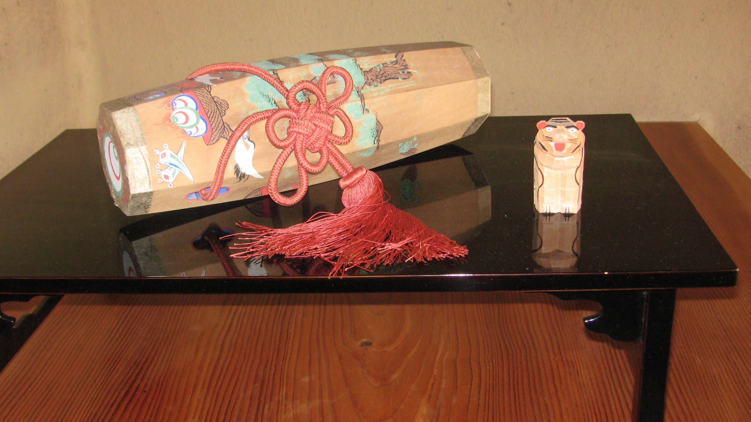 玄関のこちらは「ぶりぶり香合」といい お正月の初釜に好んで使われます。 宮中での昔の子供のおもちゃで 引っ張る時のぶりぶりという音が名前の由来です。 浦島太郎の絵も書いてあります。 今年は寅と一緒に飾りました。 あっと言う間に4日ですね~ このピンクの絞りの着物は 熱海在住の義叔母に頂いたもの。 40年以上前の物だと思います。 着物ってすごいですね。エコだなぁ。 帯はきしや 帯締めも華やかな佐賀錦にしました。