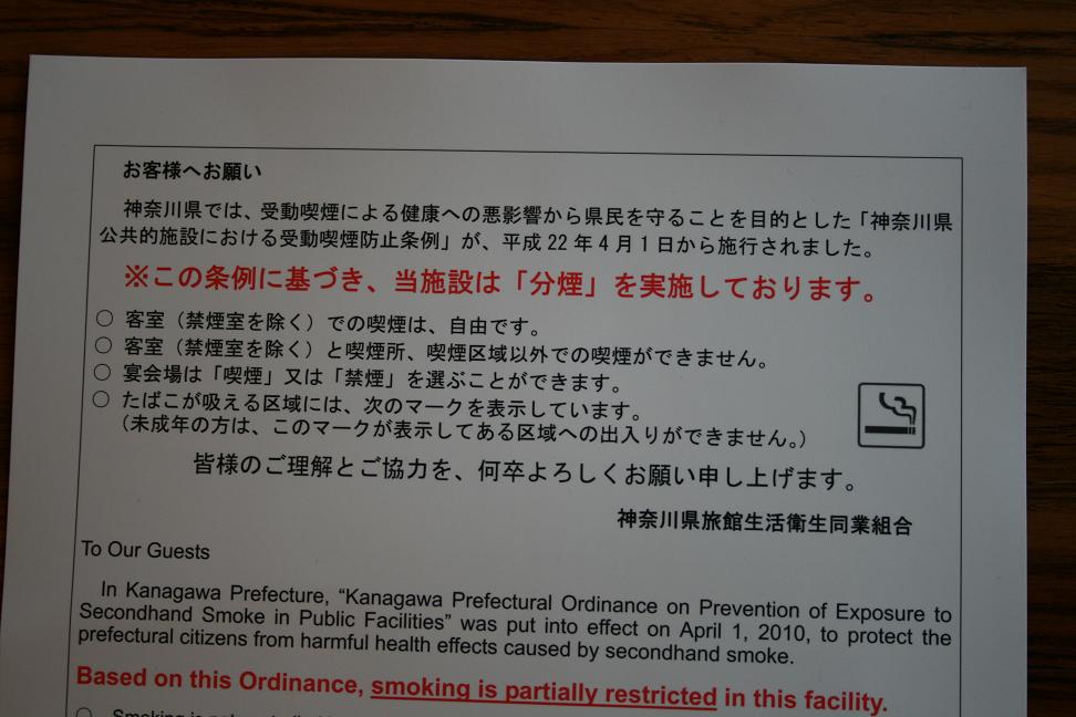 桜が見頃となりました。 フロント床の間の桜も満開 掛け軸も桜です。 もちろん大風呂露天風呂も 見頃はあと1週間くらいかな。 是非ぜひ来て頂きたい思いです ところで今日は4月1日 「神奈川県公共的施設における受動喫煙防止条例」施行の日です。 ふきやでは「分煙」を実施しております。 この事でTBS「Nスタ」のスタッフがずっと取材にきていました。 ご了承頂いたお客様のインタビューもございます。 放映予定は4月5日夜6時過ぎの「TBS・Nスタ」特集です。
