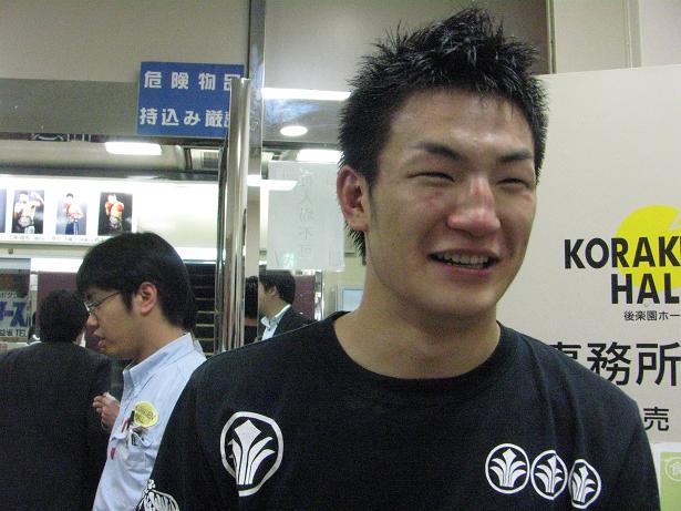 昨日あわてて着物のまま 後楽園ホールにダッシュ 松倉信太郎の応援に行って参りました。 KRUSH・キックボクシングの試合です。 バシッ!ボコッ!バチッ! 強烈な音が響き 信太郎の鼻が真っ赤に 1R2Rと互角の戦いが続き・・・ 第3Rにキメました。またもやKO勝ち でも鼻が痛々しい・・・ ファイティングポーズのお母さん 命がけですよね。 見てると涙が出てきます。 でも元気を貰います。 はい、私も頑張ります