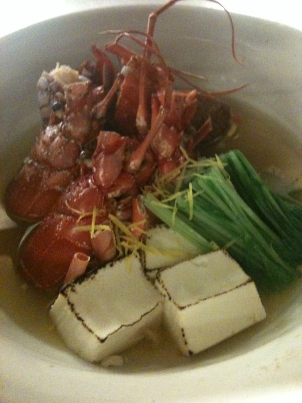 夏場の産卵を終え、 冬に備え体力を蓄えた 地物(真鶴産)の伊勢海老が 美味しさを増してきました。 ブツ切りにして大鍋で一気に煮上げ 大鉢に盛りこみます。 素材がそのまま活きています。 美味しい出汁も是非お召し上がり下さいませね