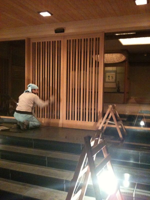 作業は玄関にお客様がいない時間なので
