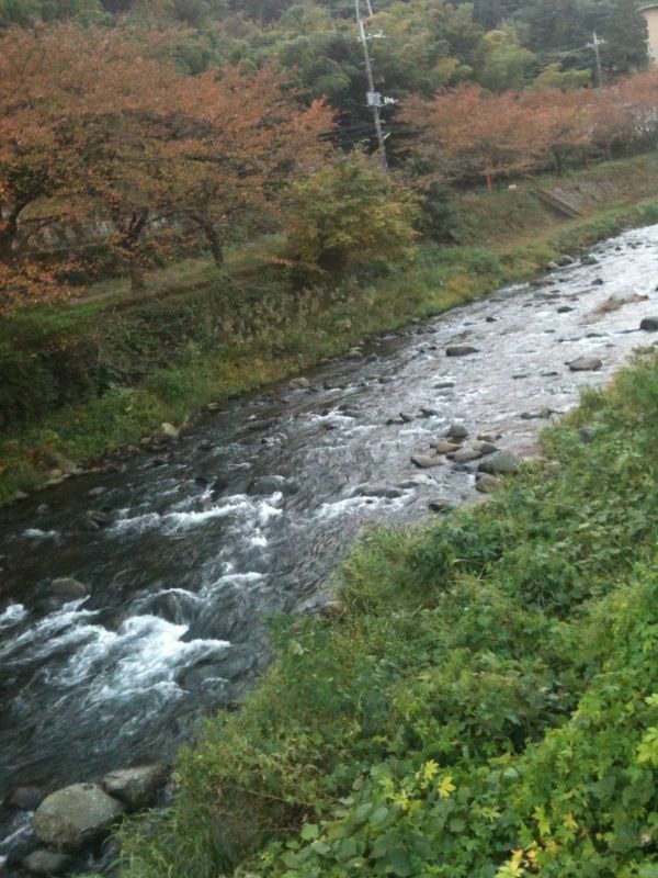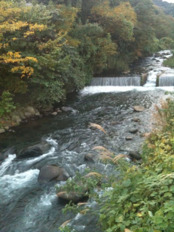 神奈川と静岡の県境の千歳川 ここ湯河原は温暖なので紅葉はまだ・・・ でも桜の木は色づいています なかなか綺麗な景色なので お天気が良かったらお散歩されるのもいいと思います 川沿いには 首大仏の福泉寺や西村京太郎記念館もございます