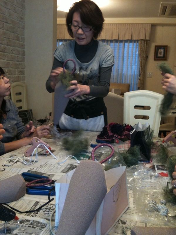グルーガン(温めたのり)で一つづつつけていきます。