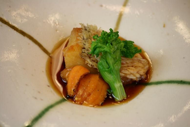 雲丹と金目鯛、菜の花添え