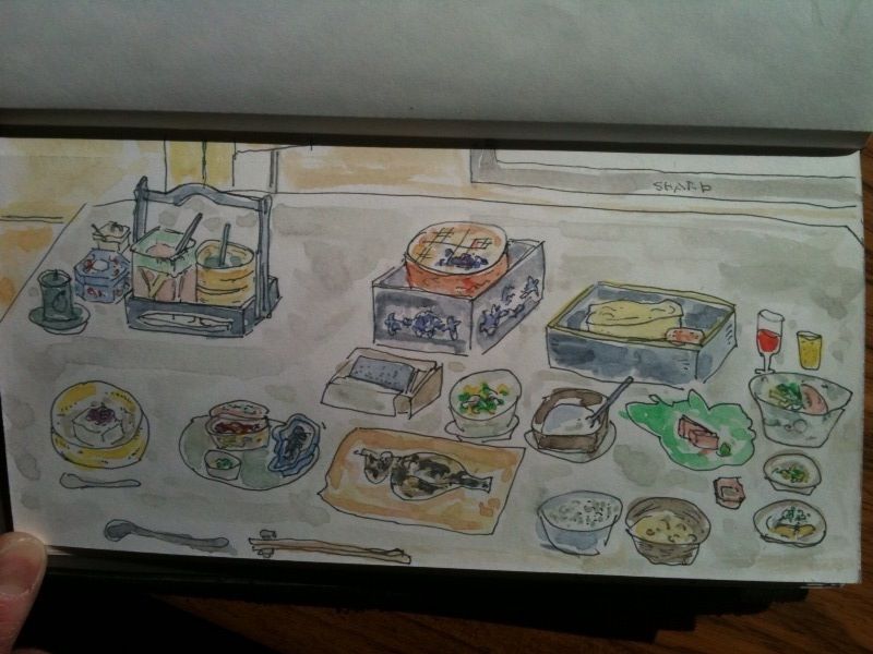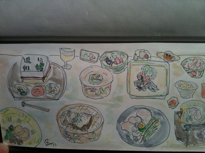 昨日お泊り頂いた堀井様 素敵なご趣味をお持ちで サラサラサラ~と水彩絵の具でお描きになられます。 夕食は少しづつお出ししておりますが それをどんどん描いていき (写真をクリックすると大きくなります) 3Fの貸し切り露天風呂でも サラサラサラ~ 朝食の時も 「色も綺麗で描きやすかった」 とおっしゃって頂きました 凄すぎます