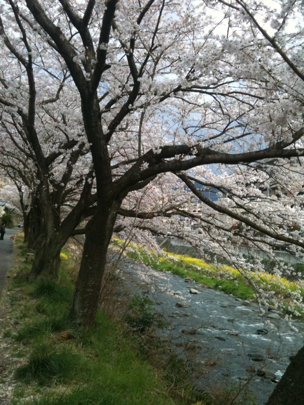 川沿いの桜も菜の花も満開です