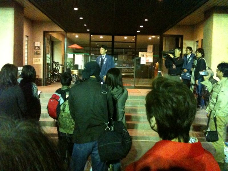 陸前高田の被災者の方のお迎えです。 長いバス旅でさぞやお疲れだろうと案じておりましたが 1人の女性の方が 「ほんの少しの間でも、あの場所を離れたかったので 遠くても苦になりませんでした。」と涙声でおっしゃていました。 思わず私も・・・。 TVで見ていただけですので こうして実際に被害にあわれた方にお会いすると 胸がいっぱいになります。 町長のご挨拶の後それぞれの旅館にむかいます。 この模様は明日の朝6時~8時に NHK「おはよう日本」で放送されます