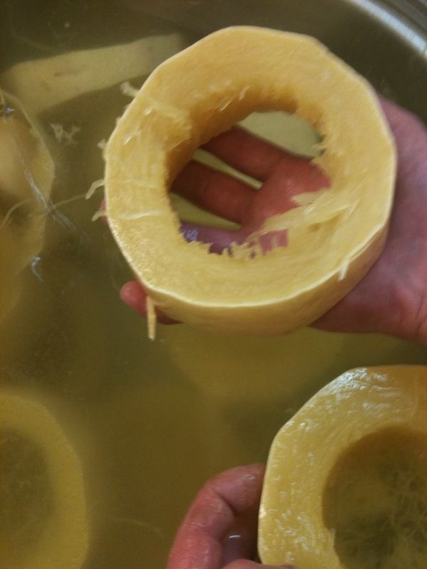 楕円形の錦糸瓜を太い輪切りにして