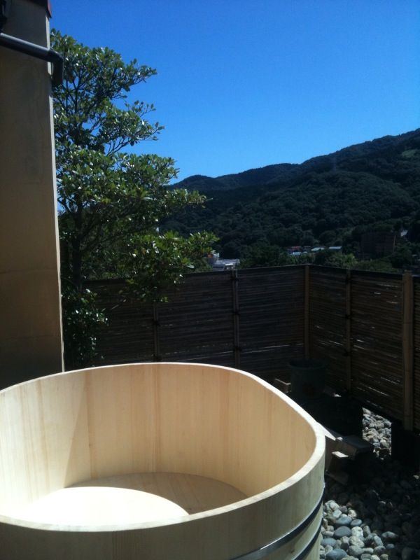 3階の檜の貸切露天風呂は メンテナンスで定期的に削っていたので やせてしまい、新しくする事となりました。 17日の土曜日にオープンの予定です 新しく高野槙の風呂桶を設置しました。 まぶしく輝いております 今日は美しい青空の太陽の下 まるで火の鳥のような?龍のような? 雲が浮かんでおりました