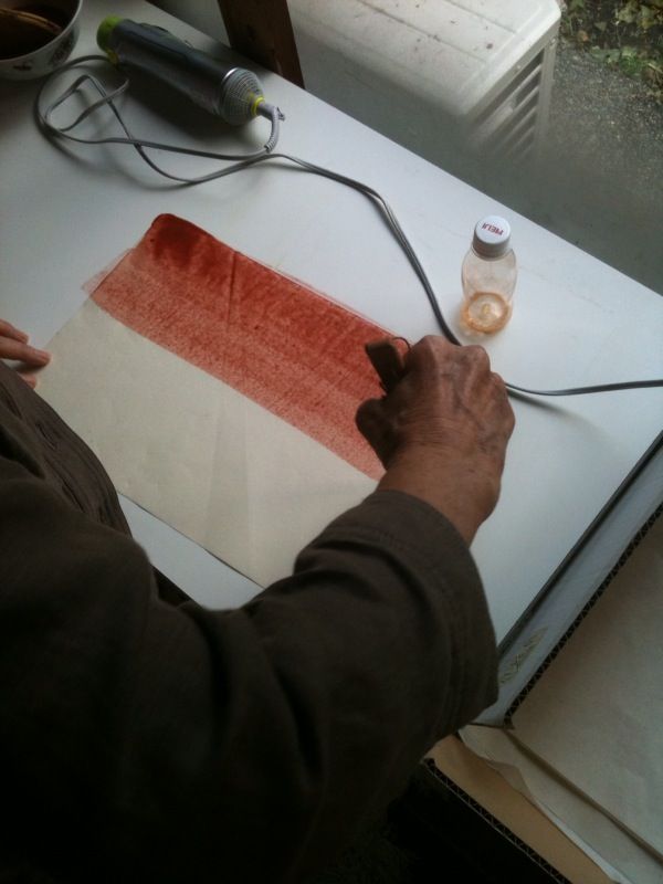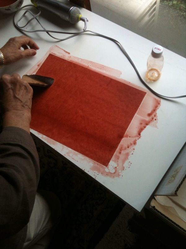 先日のお稽古では和紙の染色を見学しました