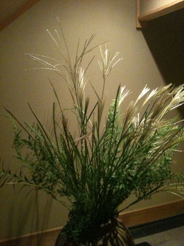 風に揺れるススキが美しい季節なので 1Fの大きな花瓶にススキを活けました。 ススキを活けている時に 大きな見慣れない虫がいたので ビニール袋に入れて 自宅のゴミ箱に捨ててしまいました。 しかし その後ふと見ると ビニール袋の小さな穴から脱出したその虫が なんと私の肩に乗っていたのです 虫の復讐 誰もいない自宅で一人で大騒ぎをしてしまいましたΣq|゚Д゚|p ススキを取る時は手や足に小さな傷もつけてしまいますし このススキには私のそんな苦労がこもっております