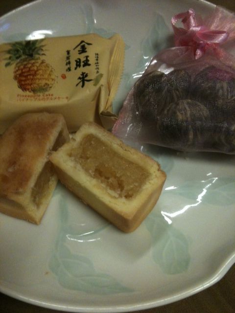 梨記のパイナップルケーキと花茶