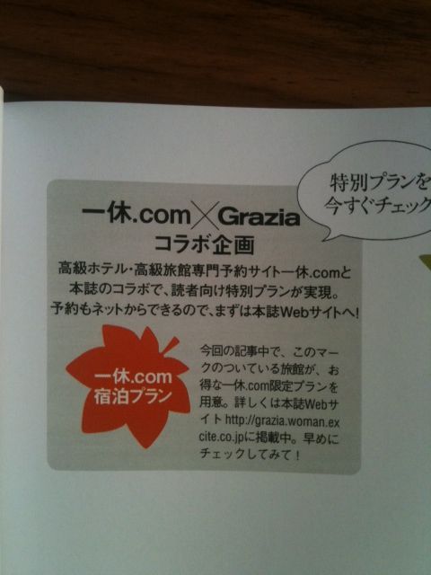 宿泊予約サイト一休とGraziaのコラボプランもございます