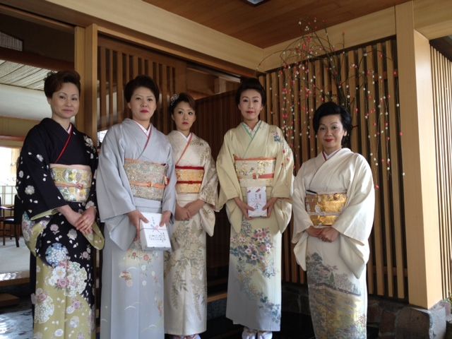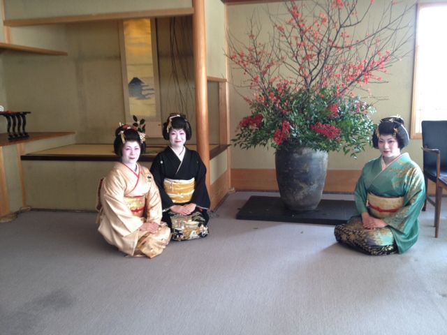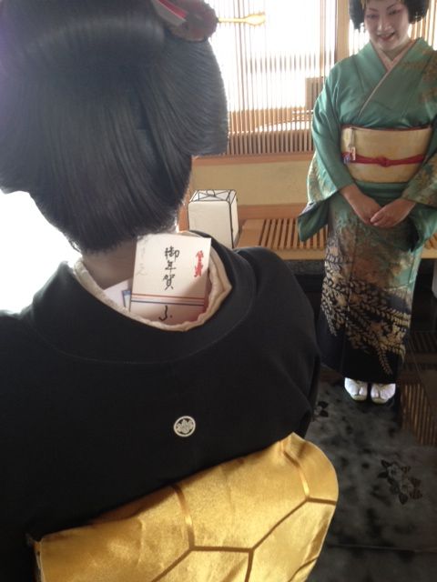 綺麗なお姉さん達が 毎年元旦にご挨拶に来てくださいます まずは「若柳」の「若葉さん」 次は右から 紅緒さん、あいさん、真緒さん、かづ乃さん、こりんさん 日本髪で登場したのは、右から 小雪さん、あきさん、なつきさん あきさんへのお年賀はうなじに入れます