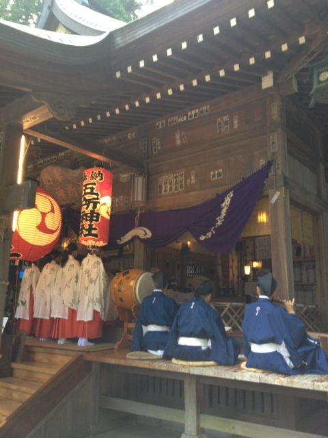今日は五所神社の例大祭 2日と3日は湯河原やっさ祭り いつも静かな街にお囃子の音が響いて賑やかです 五所神社から神様がお出になる日。 明日は巫女さんや天狗さんと町内をまわります。 昭和天皇御製 「天地の神にぞ祈る朝なぎの海のごとくに波たたぬ世を」 という浦安の舞を巫女さんが奉納しました