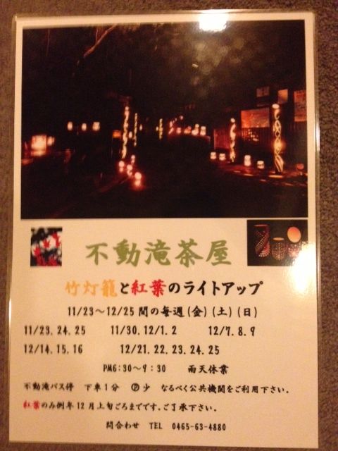 不動滝茶屋・竹灯籠と紅葉のライトアップ