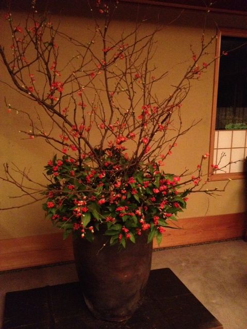 1Fの室町中期常滑壺は白梅と椿です
