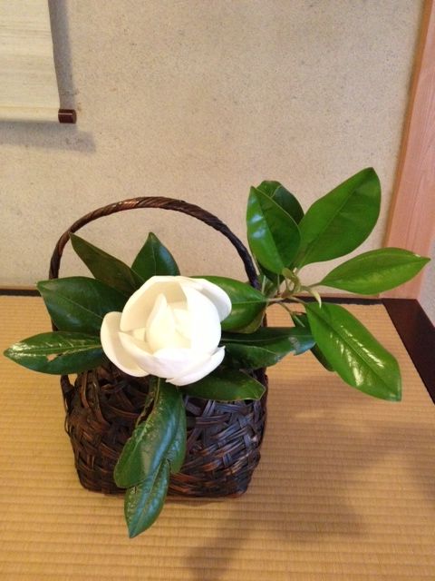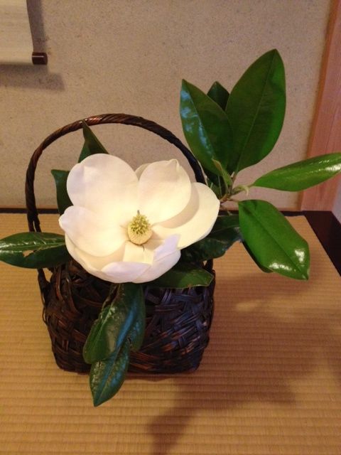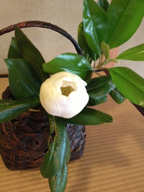 泰山木(たいさんぼく)を玄関にいけました。 昨日の夜は、つぼみでした 今朝6時頃、花が開いてきました 8時には満開です そして夕方になったら またもやつぼんできたのでした 明日の朝がまた楽しみです 甘く強い香りは 「ゲラン」「ジバンシィ」などの香水 にも配合されているそうで 思わず目を閉じてうっとりしている私です