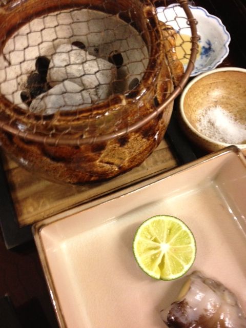 炭火でさっとあぶると