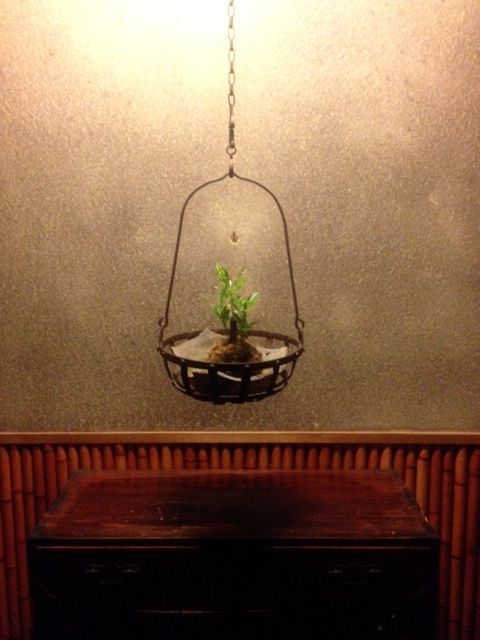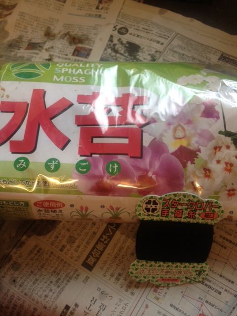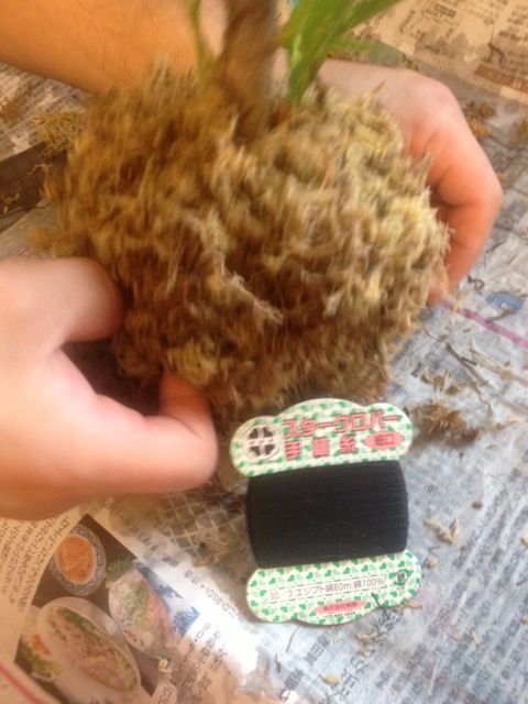 材料は水苔と黒の木綿糸だけ