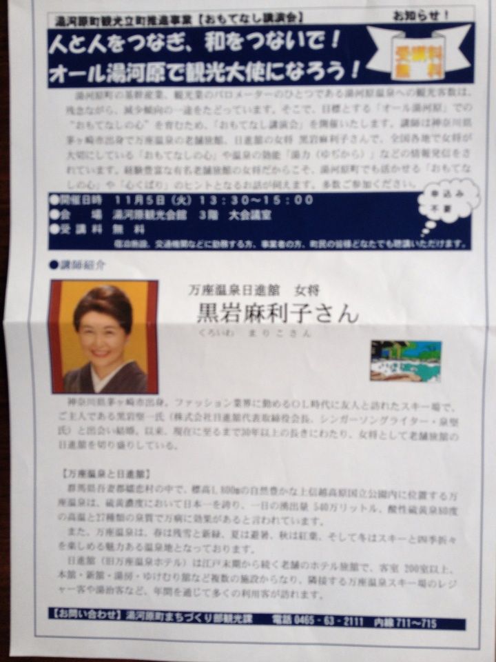 講師に万座温泉、日進館の女将さんを招いてお話を伺います。