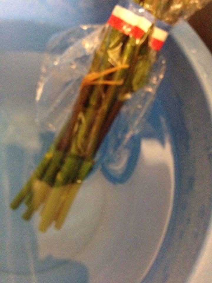 2、 小鍋にお湯を沸かし、茎を入れて10数えます。