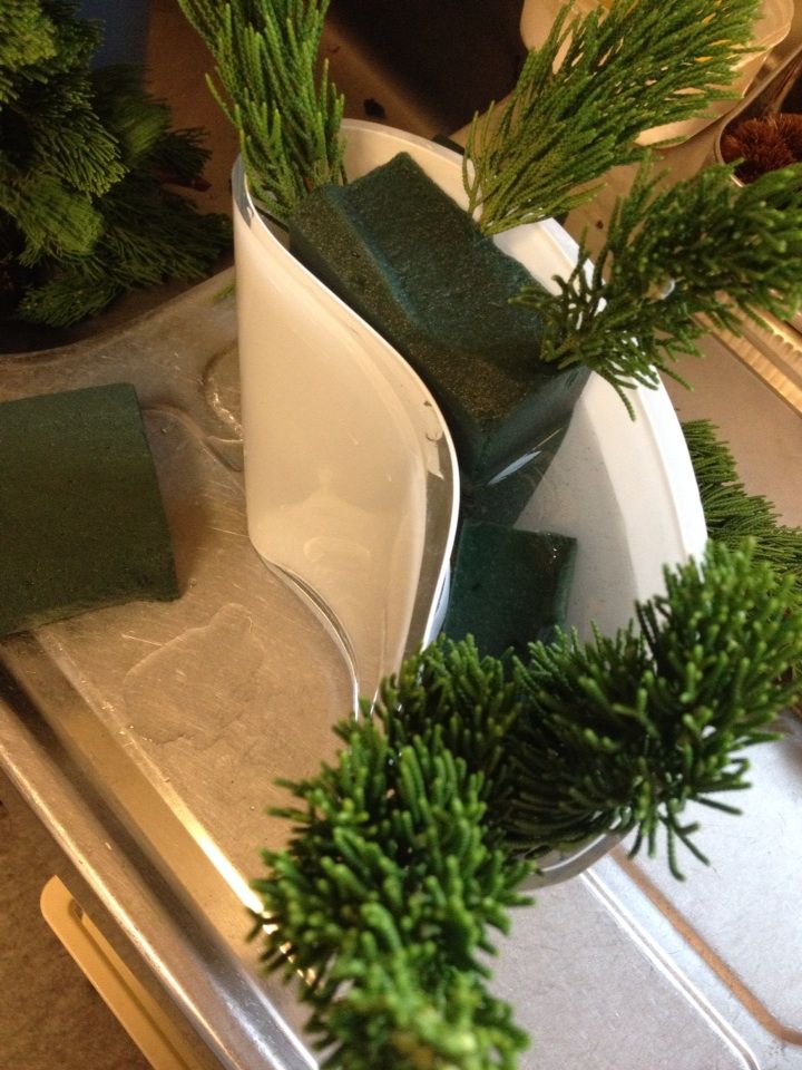 5、 花器の大きさにカットしたオアシスを入れて薔薇をさします。