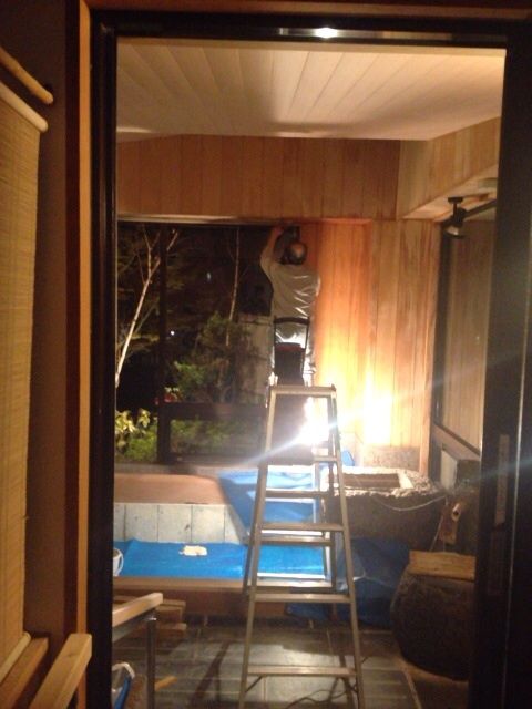 京都の「あらいや野口」さんにお願いして、館内の木の部分を職人技で綺麗にしてもらっています。 先ずは大風呂から。
