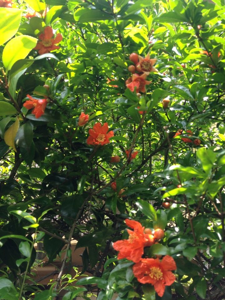 ザクロの花が満開です