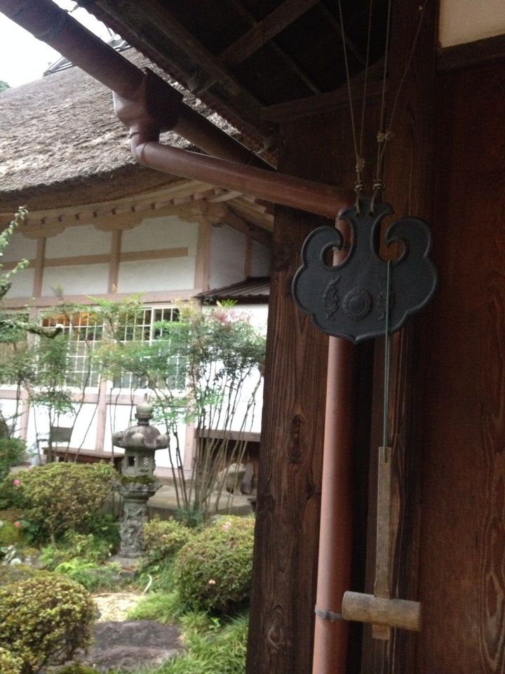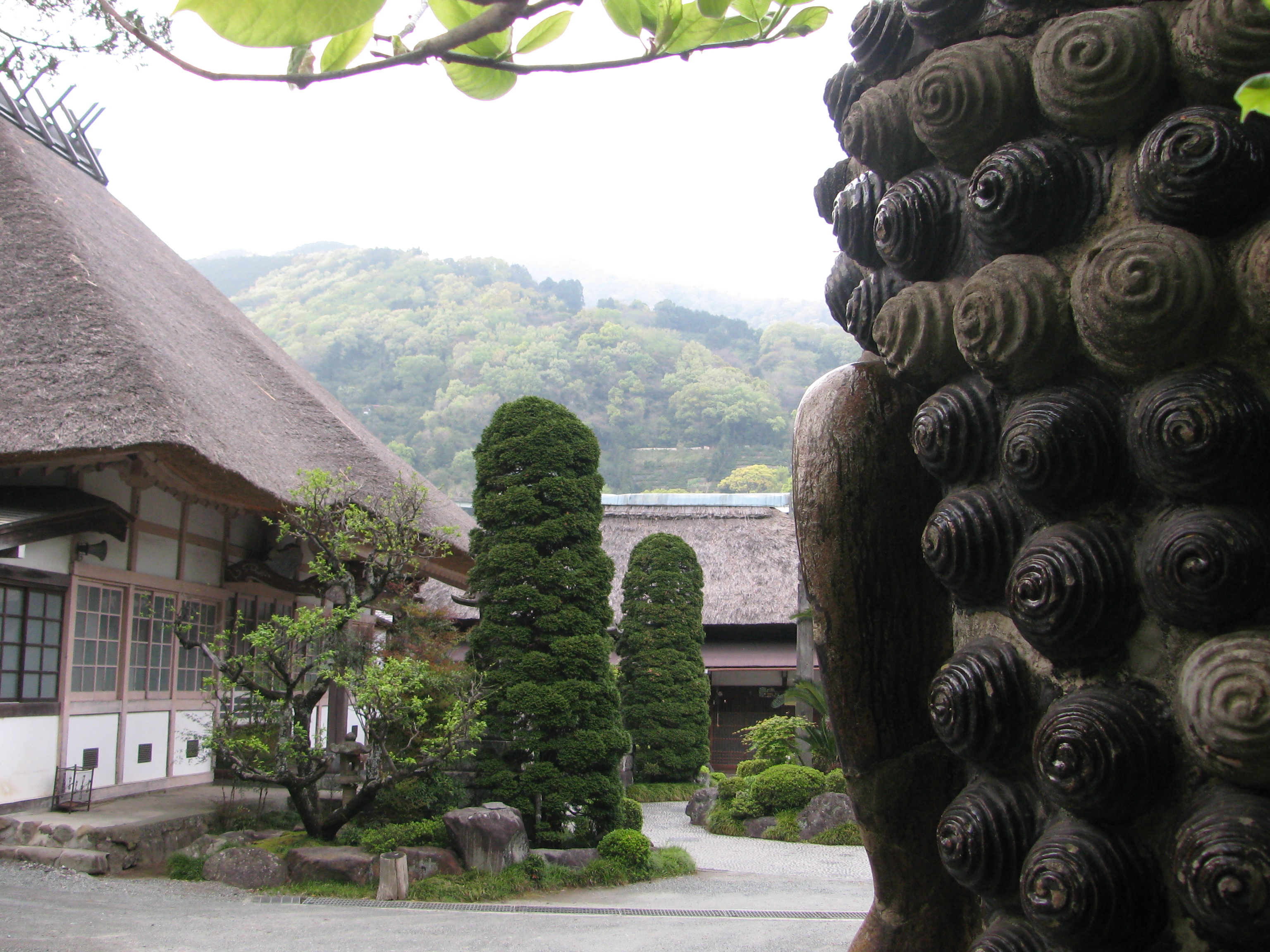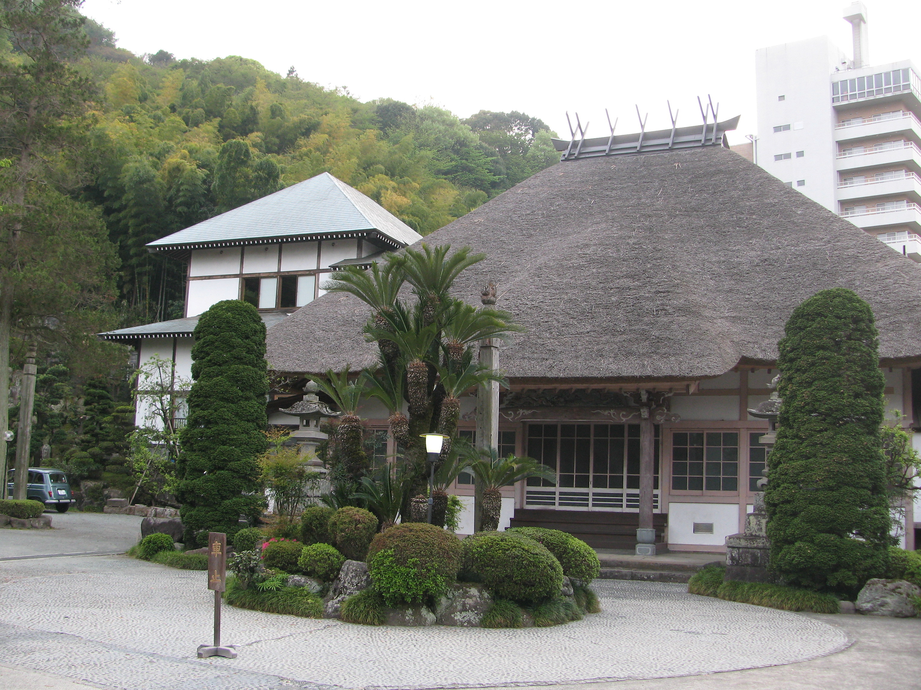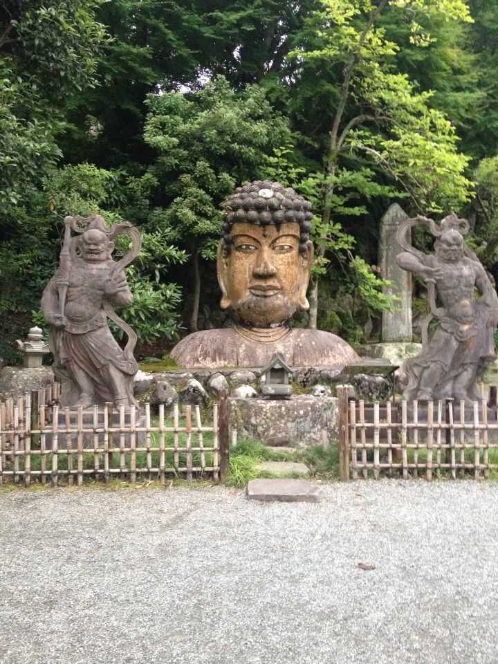茅葺き屋根に首大仏と