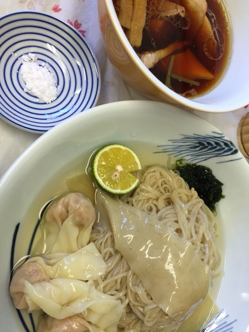 私はつけ麺にワンタンをトッピング 期待通り 昆布出汁がきいて美味しかったです