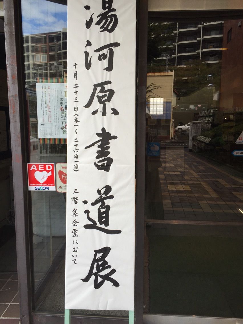 今月の焼物は五穀豊穣に感謝して 実りの秋を盛り込んだ宝楽焼です 藁苞(わらづと)を模した器にはおこわを いが栗の中には焼き目をつけた栗 巻いて焼いた杉板には旬のカマスの柚庵焼を 小芋の衣被は揚げて塩納豆をつけ 蓮根煎餅と揚げた稲穂を添えました 里の秋、山の秋、海の秋 お客様の秋の思い出と共にお召し上がりくださいませ 今日から26日まで 湯河原図書館三階にて 書道展が開催されております。 どうぞお立ち寄りくださいませ