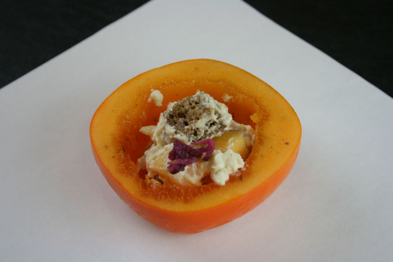 今月の先付けは玄猪包みの中に柿釜です。