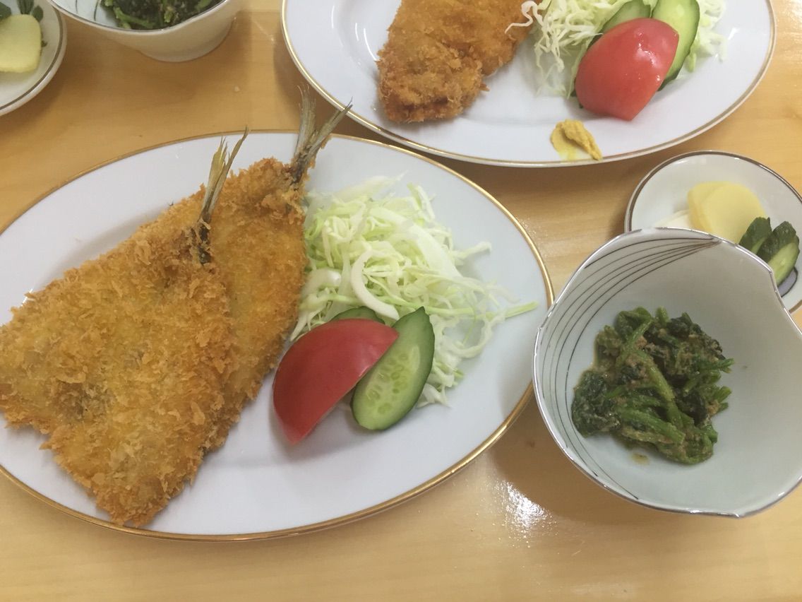 今日のお昼は湯元通りに オープンした「かとう」 トンカツ定食 アジフライ定食 どちらも850円 揚げたてアツアツ しじみのお味噌汁と御飯つき 美味しゅうございました 地場野菜も売っていて 私はナスとトマトと古根を買いました