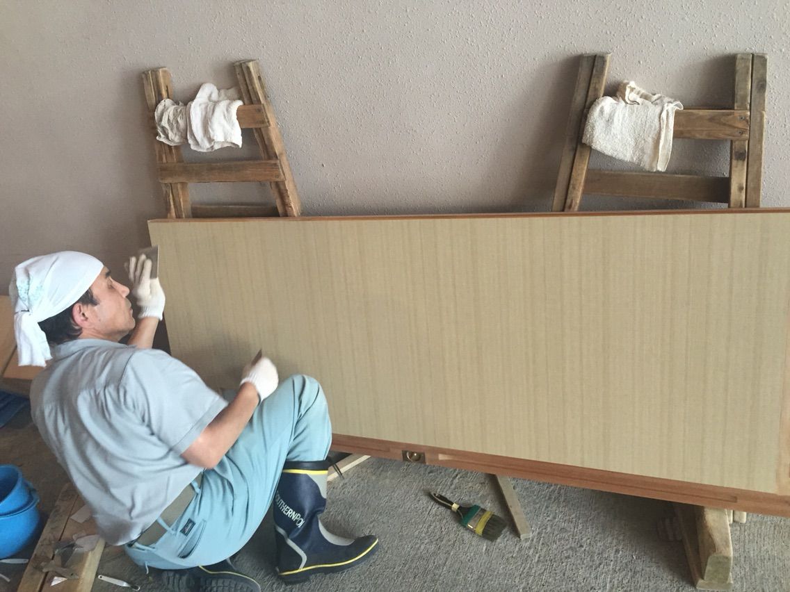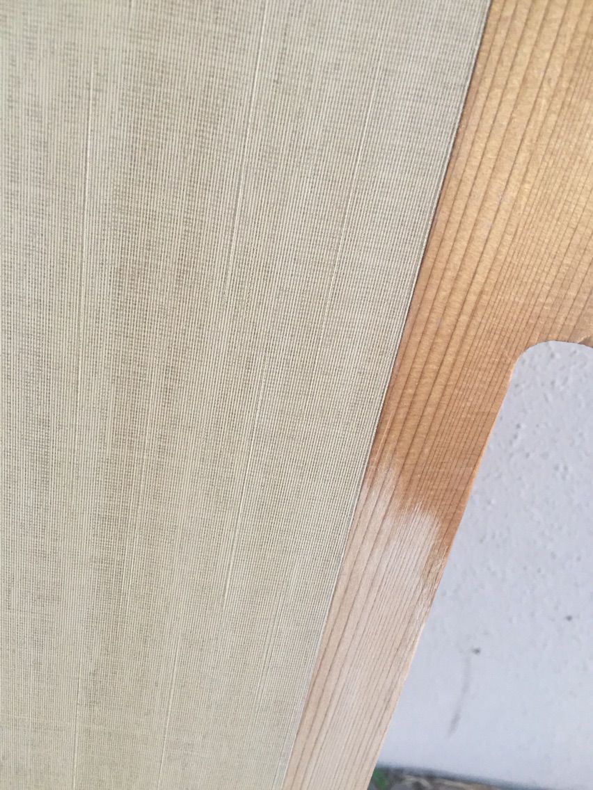 301号室のお風呂とお手洗いへの引き戸です 白木部分を綺麗にします ニスを塗らないのが基本ですが このように塗ってしまってある所は削り その後丁寧にあく洗いをします メンテナンスは地味な仕事の積み重ねです