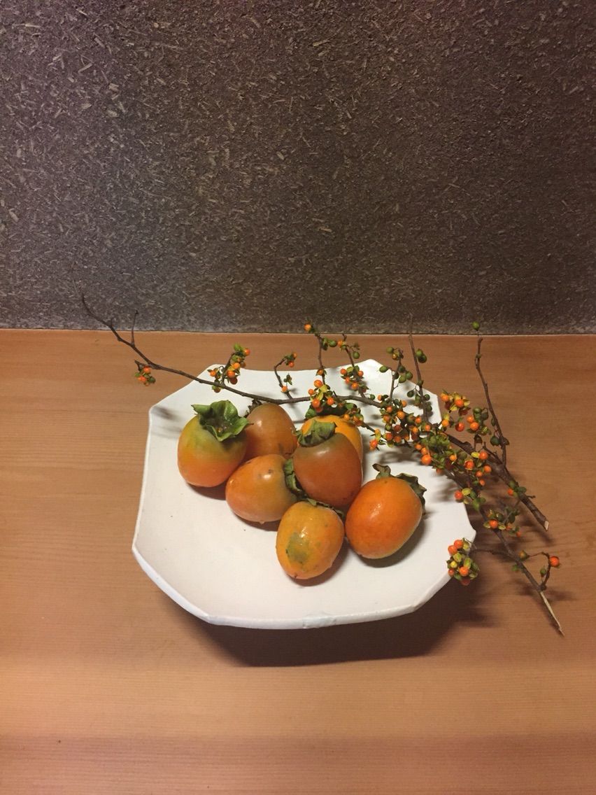 自宅庭の渋柿を飾りました
