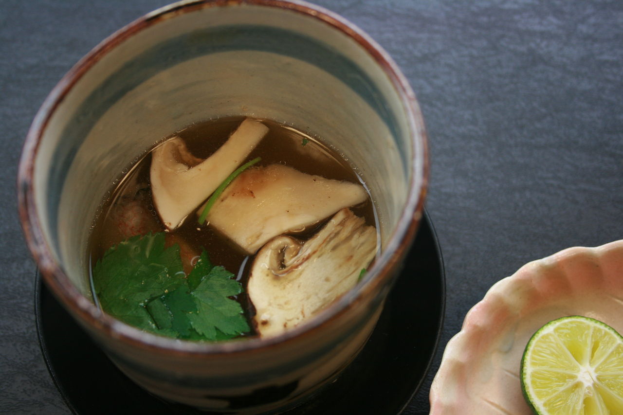 お吸い物は漆器の椀ではなく 陶器でお出ししております。