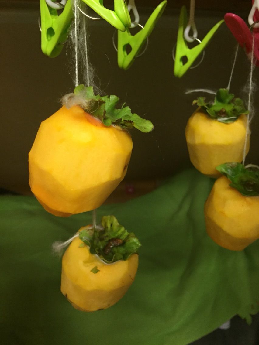 残った柿は、皮をむいて干し柿にします。 出来上がりが楽しみ