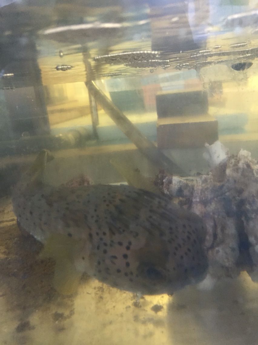 夕方、沖水産に行ったら 可愛いハリセンボンが泳いでいました 煮付にすると肝が特に美味しいそうです