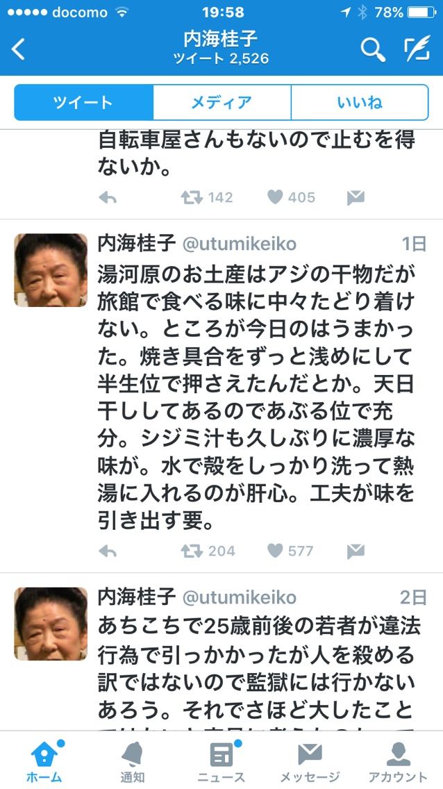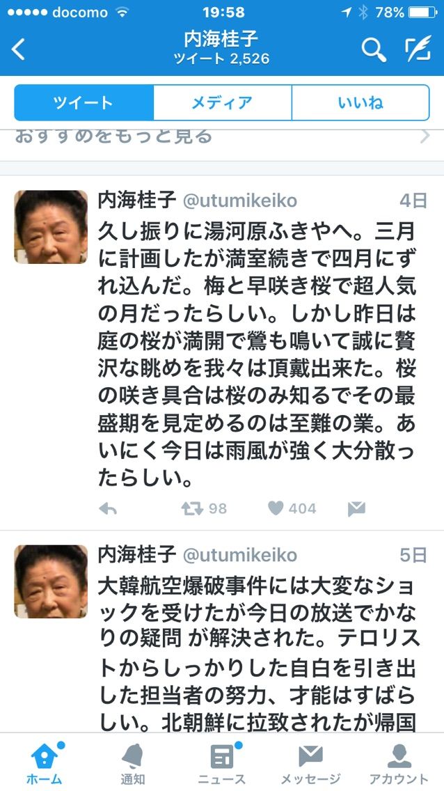 93歳の内海桂子師匠はツイッターをしていて