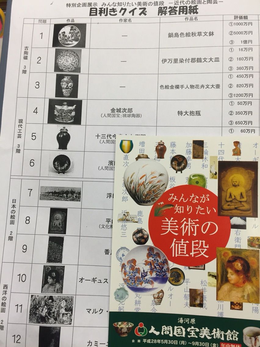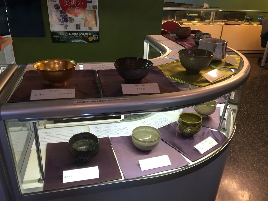 湯河原「人間国宝美術館」のコンセプトは 「見て」「使って」「買える」美術館です。 三択の「目利きクイズ」も開催中 入館料には、人間国宝作の(お値段のついた)茶器から お好きなお茶碗を選んで飲むお抹茶も含まれます。 「秀吉」という名前の黄金茶碗です 他にはないユニークで楽しめる美術館です