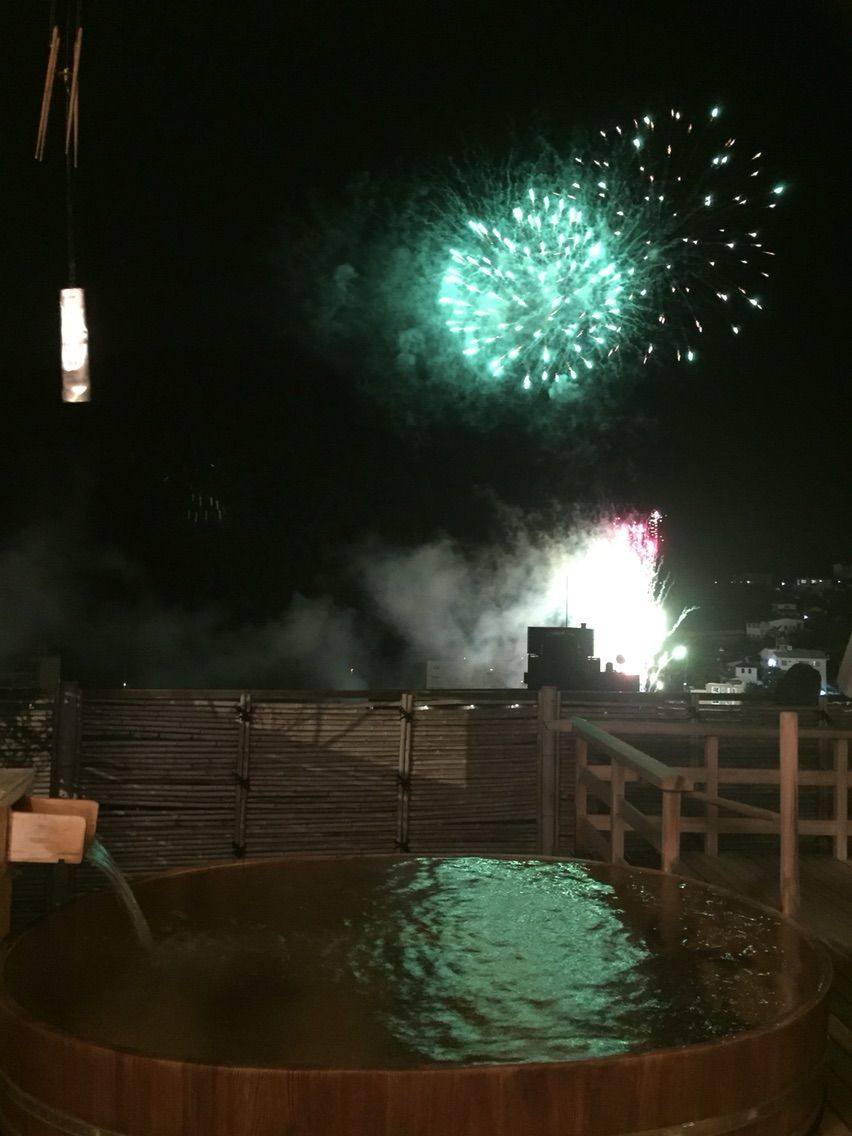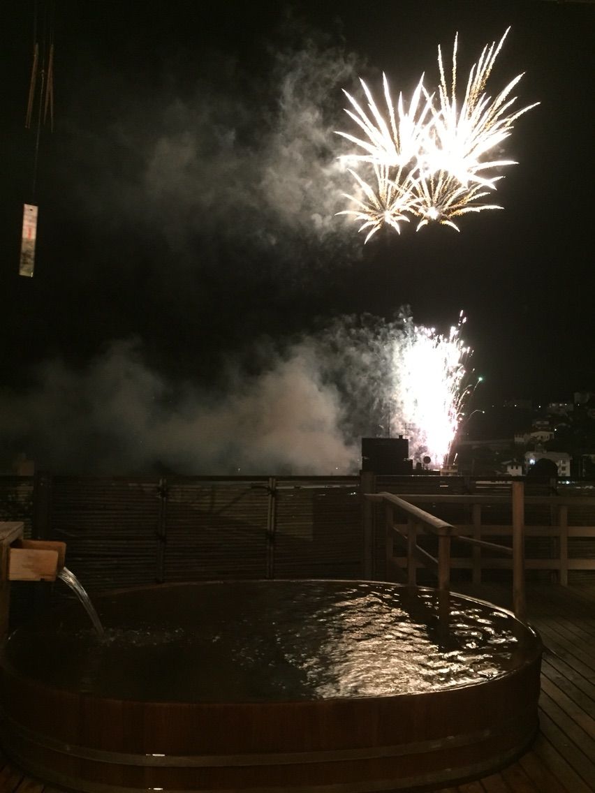 露天風呂からの花火
