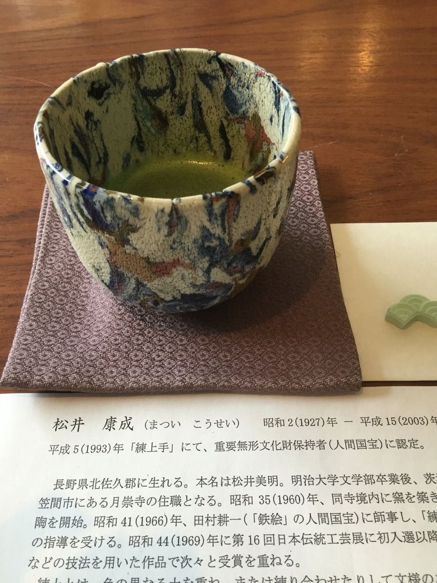 人間国宝美術館でお抹茶を頂き