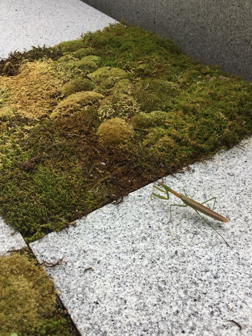 フィンユールのビーンズテーブルの上を ゆっくりと歩いているのは‥ カメラ目線のカマキリさんでした。 網でとって、外に出してあげました。 虫はみんな嫌いでしたが よく見ると、動きが優雅で 憎めないカマキリでした