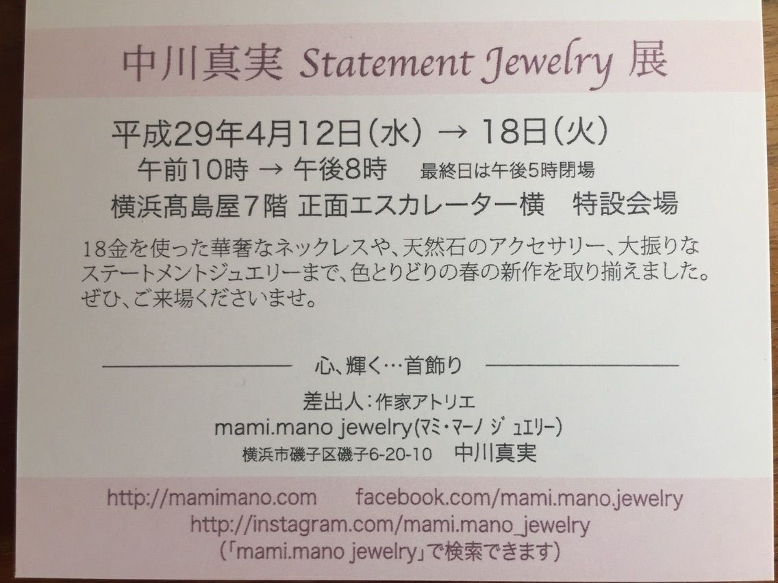 中川真実Statement Jewelry展 4月12日~18日 横浜高島屋7階 正面エスカレーター横 横浜にお出かけの際はどうぞご覧になってくださいませ。 ふきやにも置いてあるジュエリー作家中川真実さんの作品です